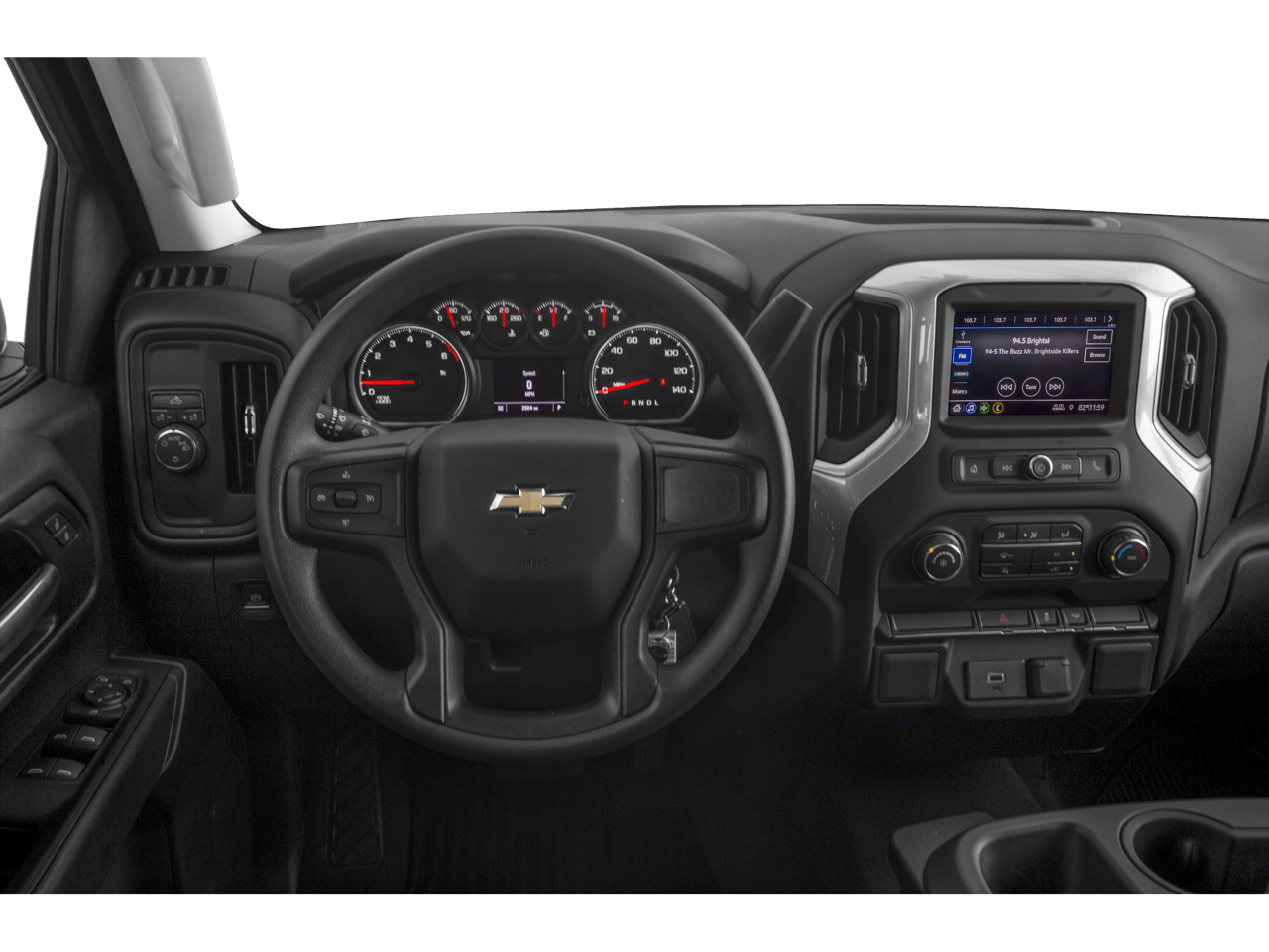 Rear Vision Camera, Tailgate and bed rail protection cap, top, Driver Information Center, 3.5" diagonal monochromatic display, Door locks, power, Daytime Running Lamps with automatic exterior lamp control, Cruise control, electronic with set and resume speed, steering wheel-mounted, WHEELS, 20" X 9" (50.8 CM X 22.9 CM) BRIGHT SILVER PAINTED ALUMINUM (STD), TRANSMISSION, 8-SPEED AUTOMATIC, ELECTRONICALLY CONTROLLED with overdrive and tow/haul mode. Includes Cruise Grade Braking and Powertrain Grade Braking (STD), TIRES, 275/60R20 ALL-SEASON, BLACKWALL (STD), SEATS, FRONT 40/20/40 SPLIT-BENCH with covered armrest storage (STD). This Chevrolet Silverado 1500 has a strong Turbocharged Gas I4 2.7L/166 engine powering this Automatic transmission.