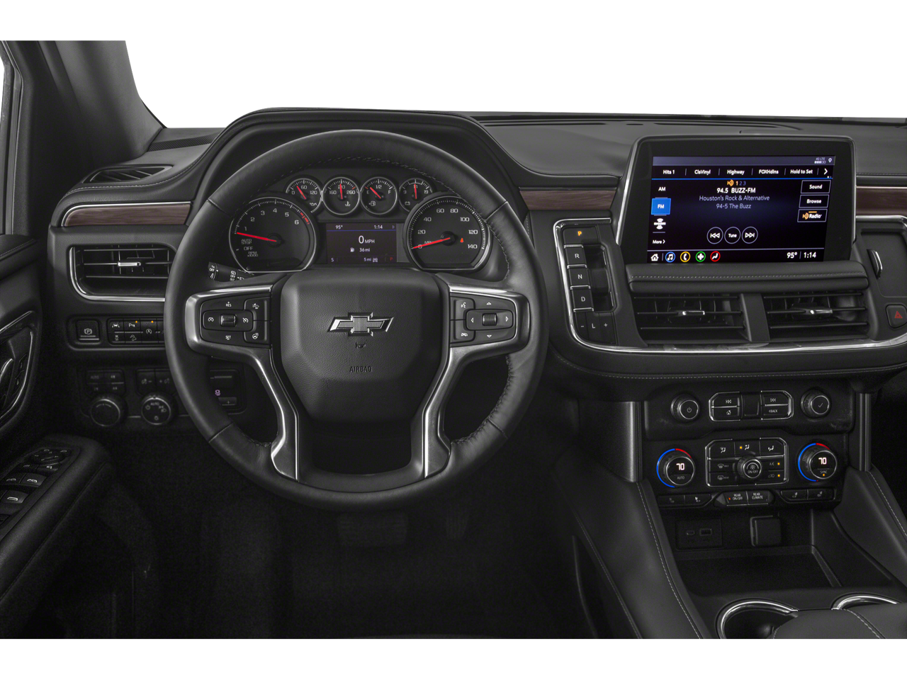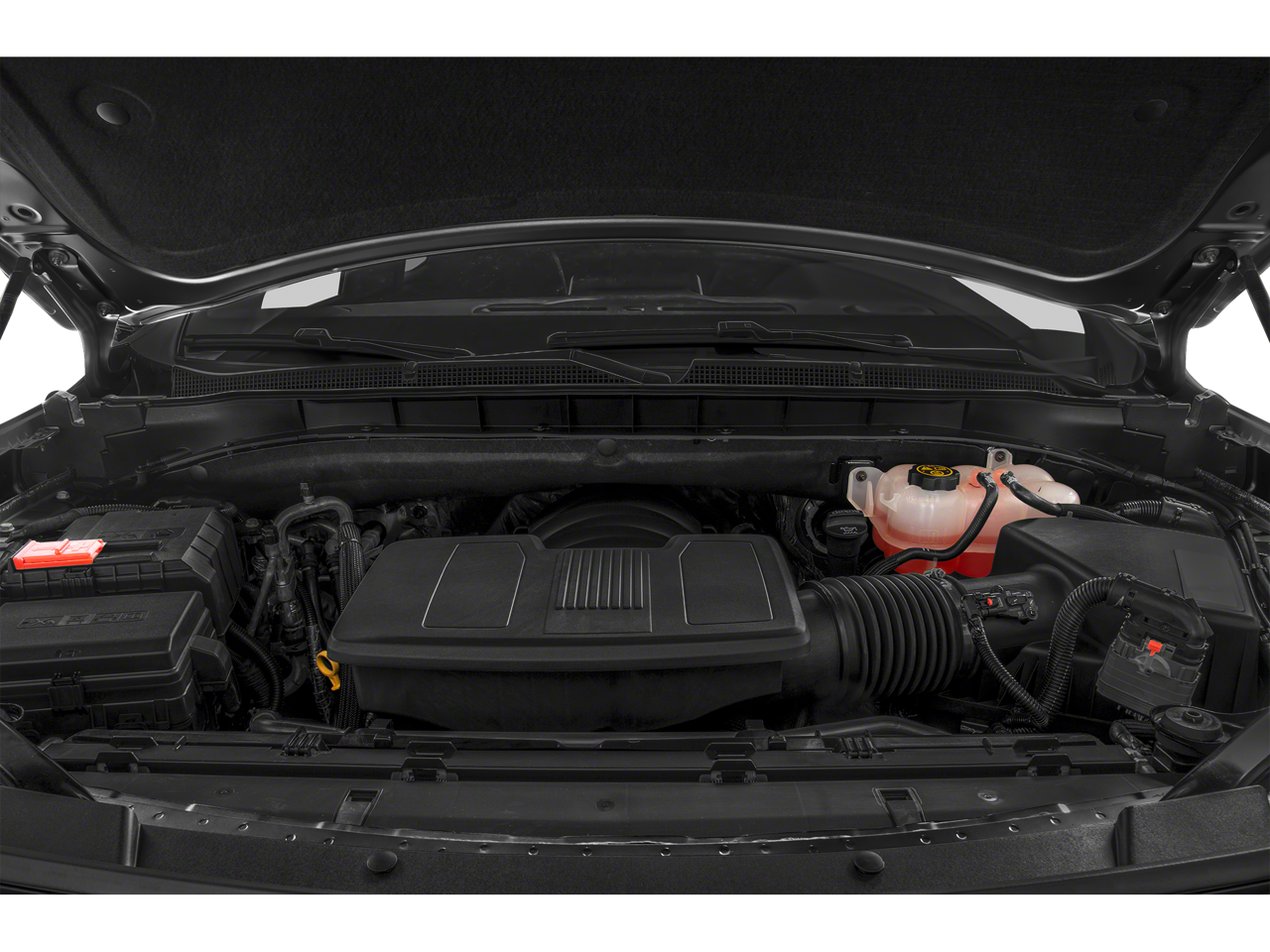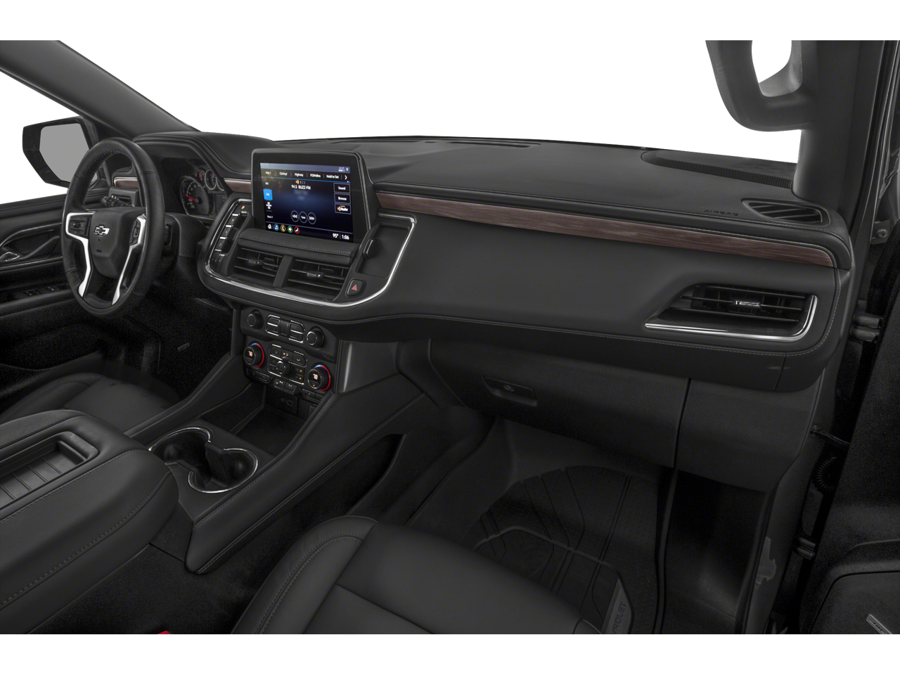 ENGINE, 5.3L ECOTEC3 V8 with Dynamic Fuel Management, Direct Injection and Variable Valve Timing, includes aluminum block construction (355 hp [265 kW] @ 5600 rpm, 383 lb-ft of torque [518 Nm] @ 4100 rpm) (STD), AUDIO SYSTEM, CHEVROLET INFOTAINMENT 3 PREMIUM SYSTEM WITH CONNECTED NAVIGATION, 10.2" DIAGONAL HD COLOR TOUCHSCREEN AM/FM stereo, Bluetooth® audio streaming for 2 active devices, Apple CarPlay and Android Auto capable, enhanced voice recognition, additional memory for in-vehicle apps, cloud connected personalization for select infotainment and vehicle settings. Subscription required for enhanced and connected services after trial period., Wireless charging (Standard on vehicles built before 7-12-2021. Vehicles built on or after 7-12-2021, will have (00C) Not Equipped with Wireless Charging which removes Wireless Charging and its content. See dealer for details. The system wirelessly charges one compatible mobile device. Some phones have built-in wireless charging technology and others require a special adaptor/back cover. To check for phone or other device compatibility, see my.chevrolet.com/learnAbout/wireless-charging or consult your carrier.), Wireless Apple CarPlay/Wireless Android Auto, Wipers, front intermittent, Rainsense, Wiper, rear intermittent with washer, Windows, power with rear Express-Down, Window, power with front passenger Express-Up/Down, Window, power with driver Express-Up/Down, Wheels, 20" x 9" (50.8 cm x 22.9 cm) machined aluminum with Technical Gray pockets, Wheel, full-size spare, 17" (43.2 cm) steel, Warning tones headlamp on, driver and right-front passenger seat belt unfasten and turn signal on, Visors, driver and front passenger illuminated vanity mirrors, sliding, USB data ports, 2, one type-A and one type-C, located within center console (Deleted when (DCH) power-sliding center console is ordered.), USB data ports 2, one type-A and one type-C, includes SD Card Reader, located within front center console (When (DCH) power-sliding center console is ordered, relocated within instrument panel.), USB charging-only ports, 4, (2) located on rear of center console and (2) in 3rd row (1 left and 1 right side below quarter glass side window), Universal Home Remote includes garage door opener, programmable, Transmission, 10-speed automatic electronically controlled with overdrive, includes Traction Select System including tow/haul (Most vehicles built on or after 6-7-2021 with a V8 engine will have (NSS) Not Equipped with Automatic Stop/Start, which removes Automatic Stop/Start, Engine control stop/start disable button and its content.), Transfer case, active, 2-speed electronic