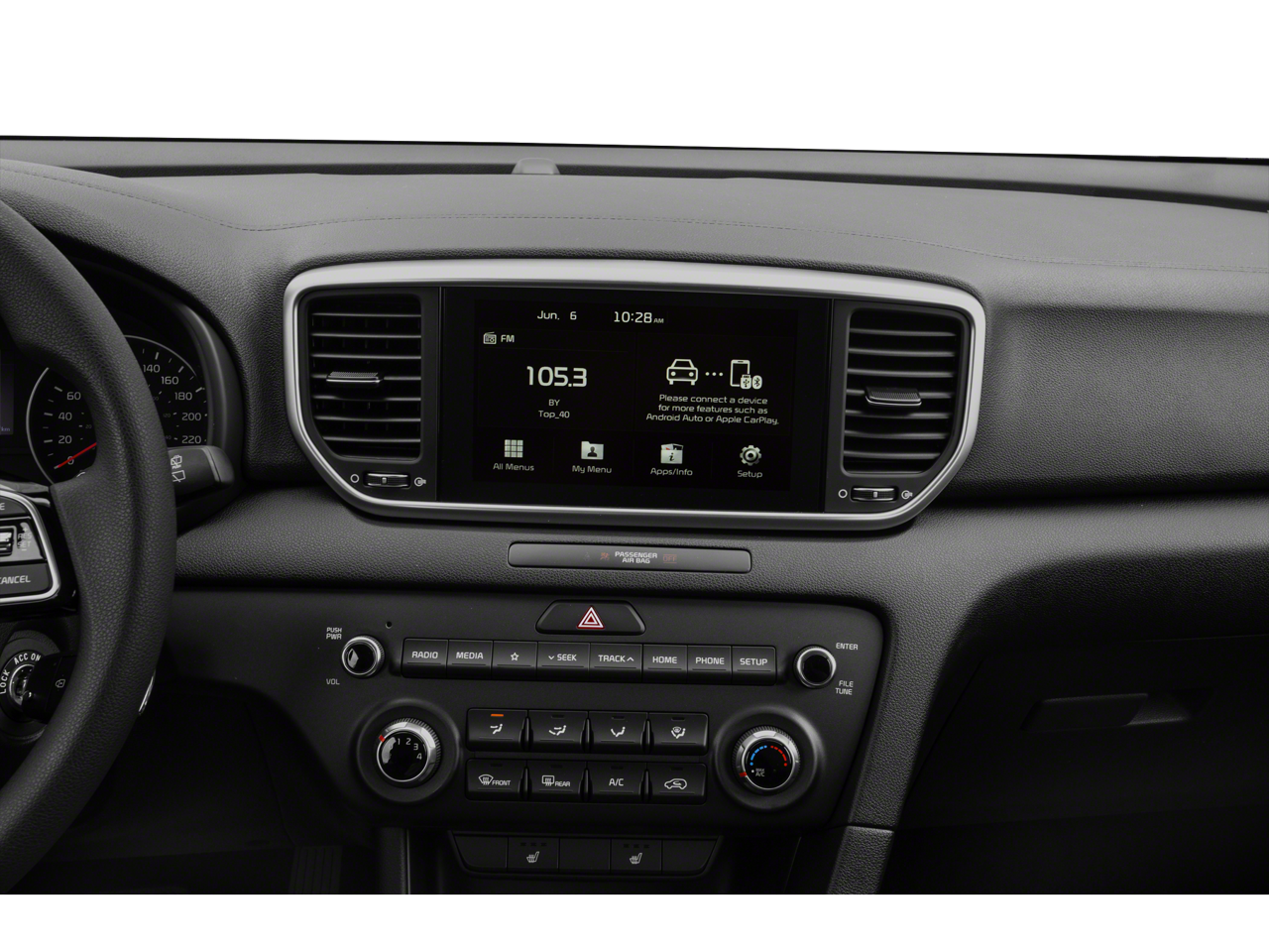 WHEEL LOCKS, PACIFIC BLUE, CARPETED FLOOR MATS, BLACK, CLOTH SEAT TRIM, Wireless Phone Connectivity, Wheels: 17" Alloy, Vinyl Door Trim Insert, Variable Intermittent Wipers, Urethane Gear Shifter Material, Trip computer. This Kia Sportage has a strong Regular Unleaded I-4 2.4 L/144 engine powering this Automatic transmission.