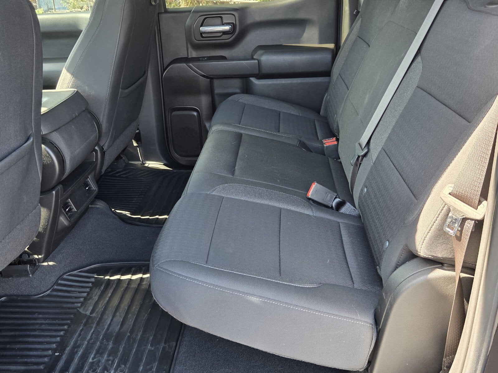WHEELS, 20" X 9" (50.8 CM X 22.9 CM) HIGH GLOSS BLACK PAINTED ALUMINUM, TRANSMISSION, 8-SPEED AUTOMATIC, ELECTRONICALLY CONTROLLED with overdrive and tow/haul mode. Includes Cruise Grade Braking and Powertrain Grade Braking (STD), TIRES, 275/60R20 ALL-SEASON, BLACKWALL (STD), STEERING COLUMN, MANUAL TILT AND TELESCOPING, SEATS, FRONT 40/20/40 SPLIT-BENCH with covered armrest storage and under-seat storage (lockable) (STD), REAR AXLE, 3.42 RATIO, NOT EQUIPPED WITH STEERING COLUMN LOCK, SEE DEALER FOR DETAILS, JET BLACK, CLOTH SEAT TRIM, ENGINE, 2.7L TURBO HIGH-OUTPUT (310 hp [231 kW] @ 5600 rpm, 430 lb-ft of torque [583 Nm] @ 3000 rpm) (STD), DARK ASH METALLIC. This Chevrolet Silverado 1500 has a dependable Turbocharged Gas I4 2.7L/166 engine powering this Automatic transmission.