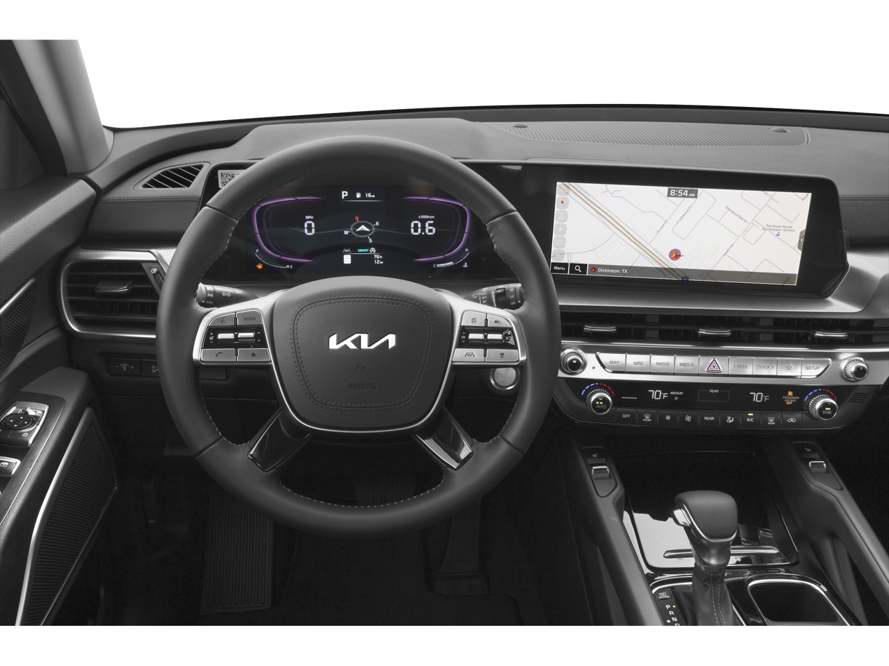 Back-Up Camera, Remote Keyless Entry w/Integrated Key Transmitter, Illuminated Entry, Illuminated Ignition Switch and Panic Button, Rear HVAC w/Separate Controls, Proximity Key For Doors And Push Button Start, Power Door Locks w/Autolock Feature, Outside Temp Gauge, Lip Spoiler, Integrated Navigation System w/Voice Activation, Dual Zone Front Automatic Air Conditioning, Day-Night Rearview Mirror. This Kia Telluride has a powerful Regular Unleaded V-6 3.8 L/231 engine powering this Automatic transmission.