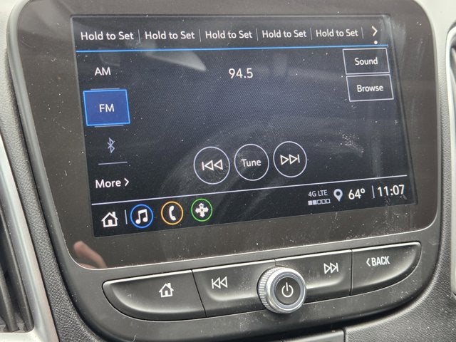 - Audio system, Chevrolet Infotainment 3 system, 8" diagonal color touchscreen, AM/FM stereo. Additional features for compatible phones include: Bluetooth® audio streaming for 2 active devices, voice command pass-through to phone, Apple CarPlay and Android Auto capable.