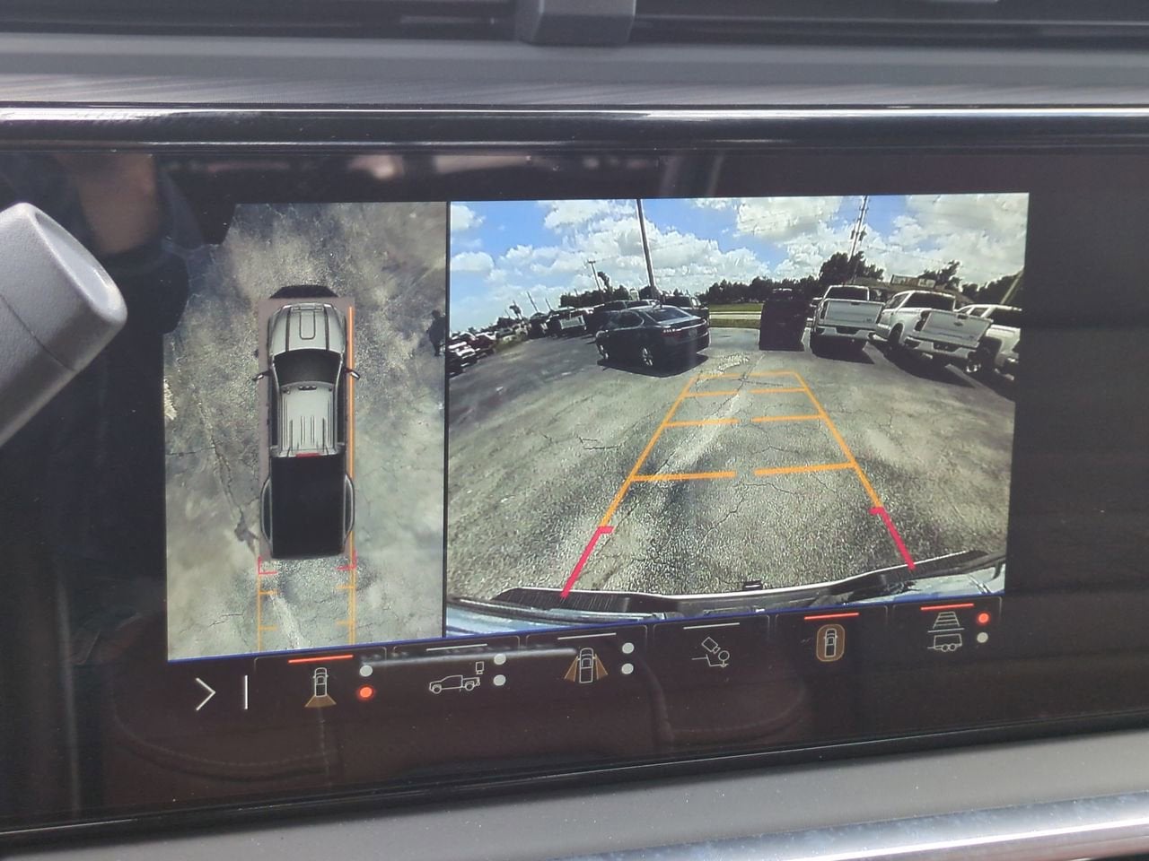- Allows driver to see inside the cargo bed on the infotainment display to help with 5th wheel or gooseneck hitching and to check cargo
